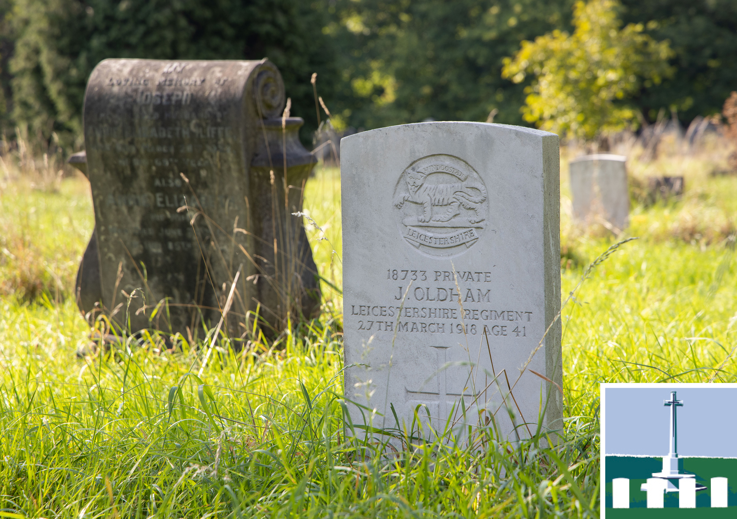 The 5th Northern General Hospital was established under this scheme in Leicester in 1914. The main hospital was housed in the former Leicester and Rutland Lunatic Asylum, which had been empty since 1908. Existing outbuildings were replaced with more suitable accommodation for patients and medical staff and over the course of the war the hospital expanded to more than 60 locations in the area including North Evington War Hospital, Knighton House Hospital, Gilcross Hospital and Leicester Royal Infirmary. By 1917 there were beds for almost 2,600 patients in and around the city and by 1919 more than 95,000 casualties of war had been treated. Of that number 514 died, of whom 286 lie here in Welford Road Cemetery. All were given a military funeral with honours. More than half of the First World War casualties are in the war graves plot, their names inscribed on the Screen Wall.Â