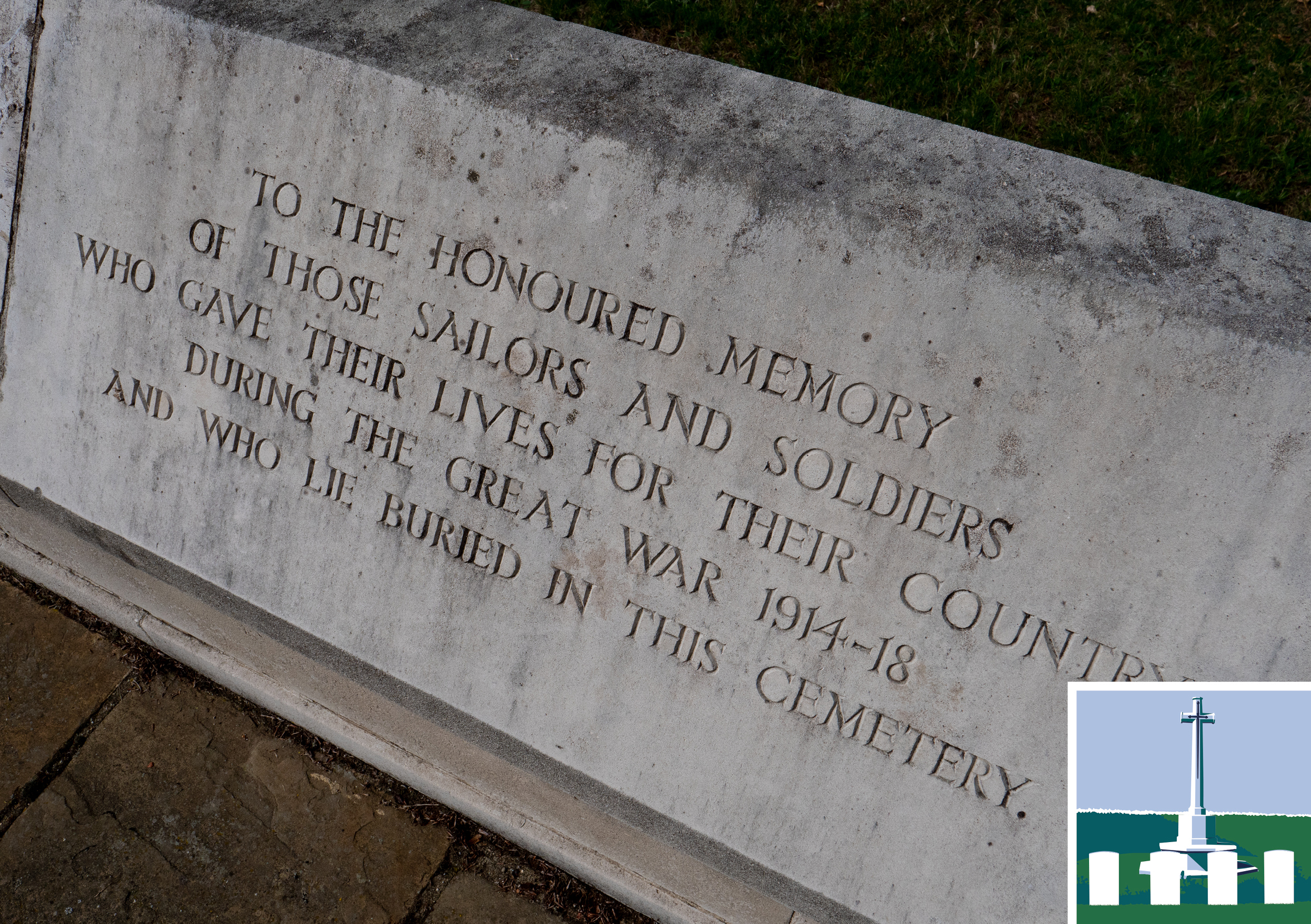 The majority of the servicemen commemorated here are from the United Kingdom but there are also Australians, New Zealanders and Canadians, reflecting the great contribution made to the war effort by those countries. In all there are some 323 service burials from the First World War, many named on a screen wall as their graves cannot be marked individually. Among the First World War burials is Staff Nurse Ellen Louise Smithies who was invalided home from France and died on 22 February 1919 aged 34.