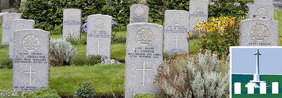 As a key port on the west coast of Scotland, Ayr was accustomed to trade with North and South America in the 19th and early 20th centuries. The First World War brought soldiers from across the Atlantic as well. During the First World War the Newfoundland Regiment established their depot in Ayr, and today you will find headstones which bear the Caribou badge of the Newfoundland Regiment in this war cemetery. The majority of the First World War burials are dotted around the cemetery, while the Second World War graves are in several special groups. A War Cross can be found in the Old Ground, near the main entrance.