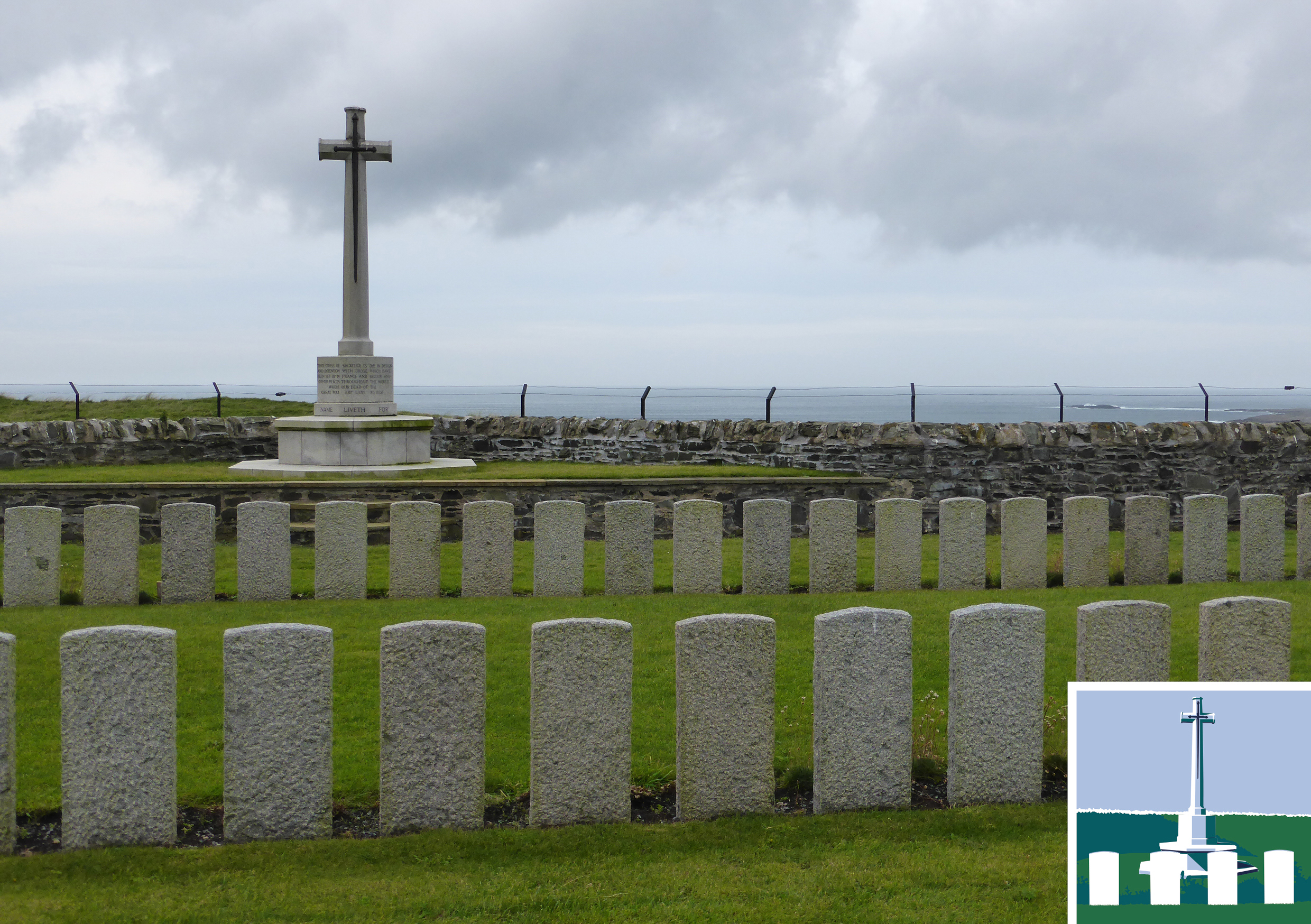 This isolated cemetery was begun following the sinking of the troop ship HMS Otranto off Islay in October 1918 and is the final resting place of 74 British servicemen, 71 being crewmen of the Otranto.