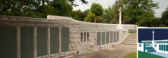 The finished memorial consisted of Portland stone with green slate panels inscribed with the names of the missing.