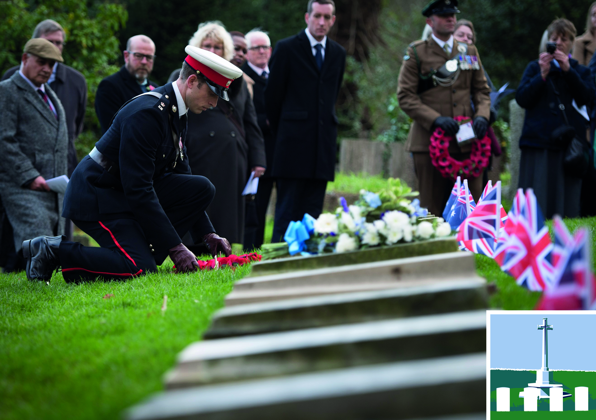 Some 360 men and women of Commonwealth forces who died while serving during the First World War are buried or commemorated in this cemetery. The names of some 240 of these are inscribed on the memorial in “Soldiers’ Corner”, the war graves plot near the main entrance. In 2018 the CWGC’s expert stonemasons restored the original flat grave markers in this plot and created 40 new ones to replace those that were missing or beyond repair. Two thirds of the cemetery’s First World War service burials are in this plot and include men of Australian, British, Canadian and South African units.