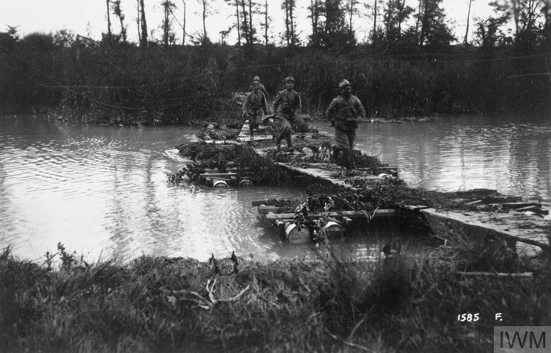Italian troops cross a pontoon bridge over the swollen Piave (© IWM Q 65289)