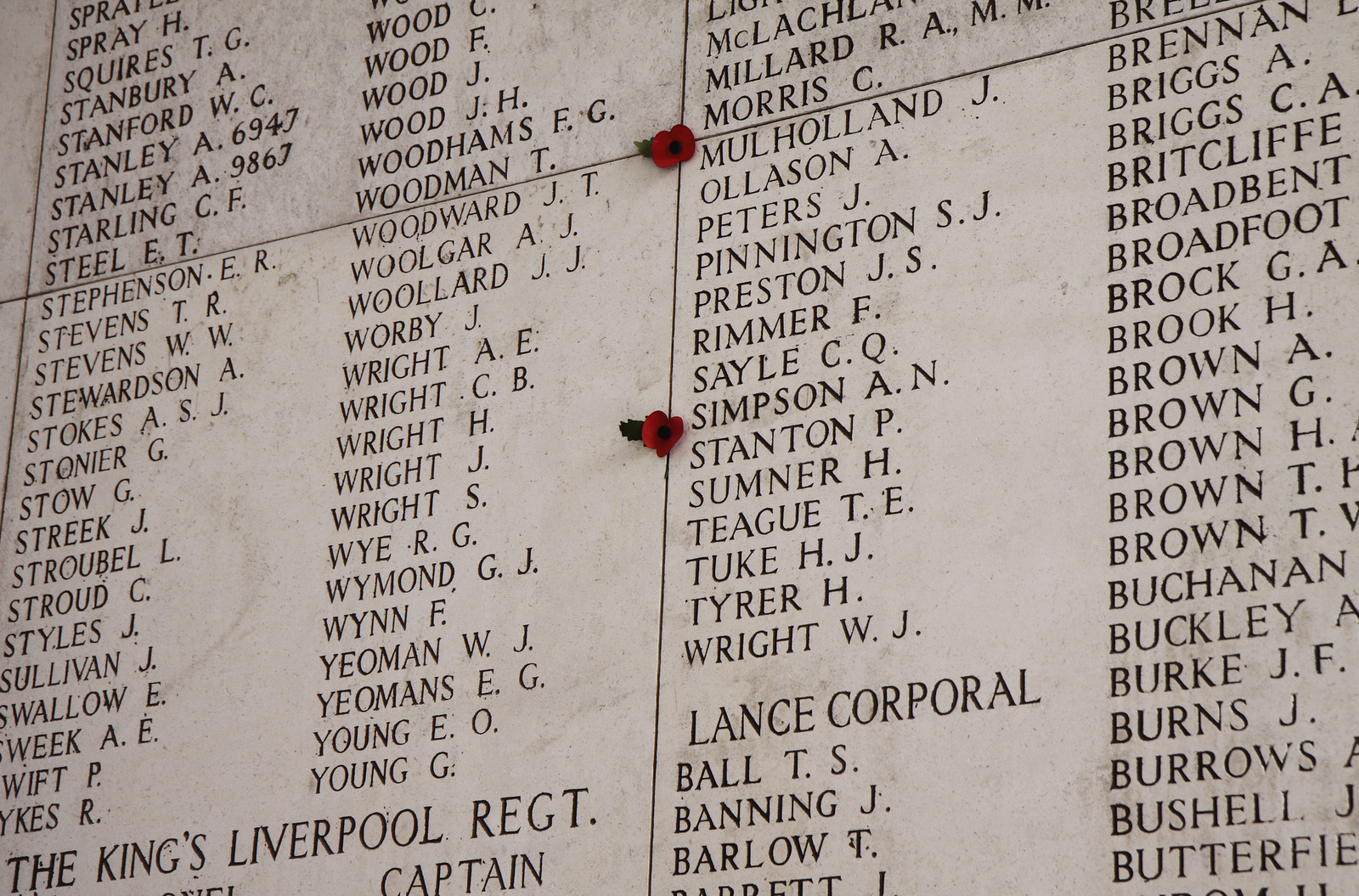 As we know, not all soldiers who died during the Great War were recovered for proper burials. To mark some of these men, has a memorial to the missing sits within the grounds of Tyne Cot Cemetery: The Tyne Cot Memorial. Over 34,000 names are inscribed on its walls, commemorating soldiers who fell with no known grave.
