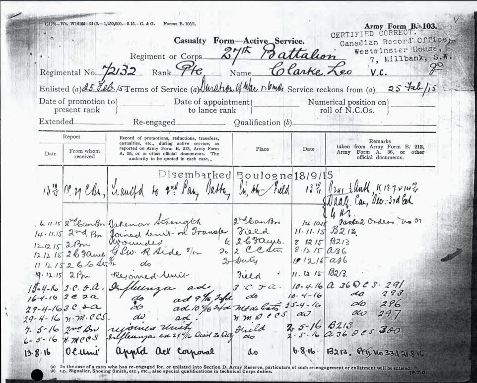 Leo Clarke won his Victoria Cross in 1916 during the Battle of Flers-Courcelette.