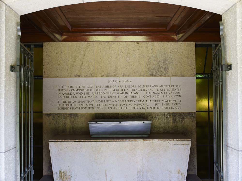Yokohama is split into four sections: UK, New Zealand, Australian, and Canadian. Within the grounds of the cemetery, you will also find the Yokohama Cremation Memorial. This shrine holds the ashes of 335 sailors, airmen, and soldiers of the Commonwealth, US, and The Netherlands who died as POWs in Japan. Their names, apart from around 50 who are currently unidentified, are inscribed on the shrine’s walls.