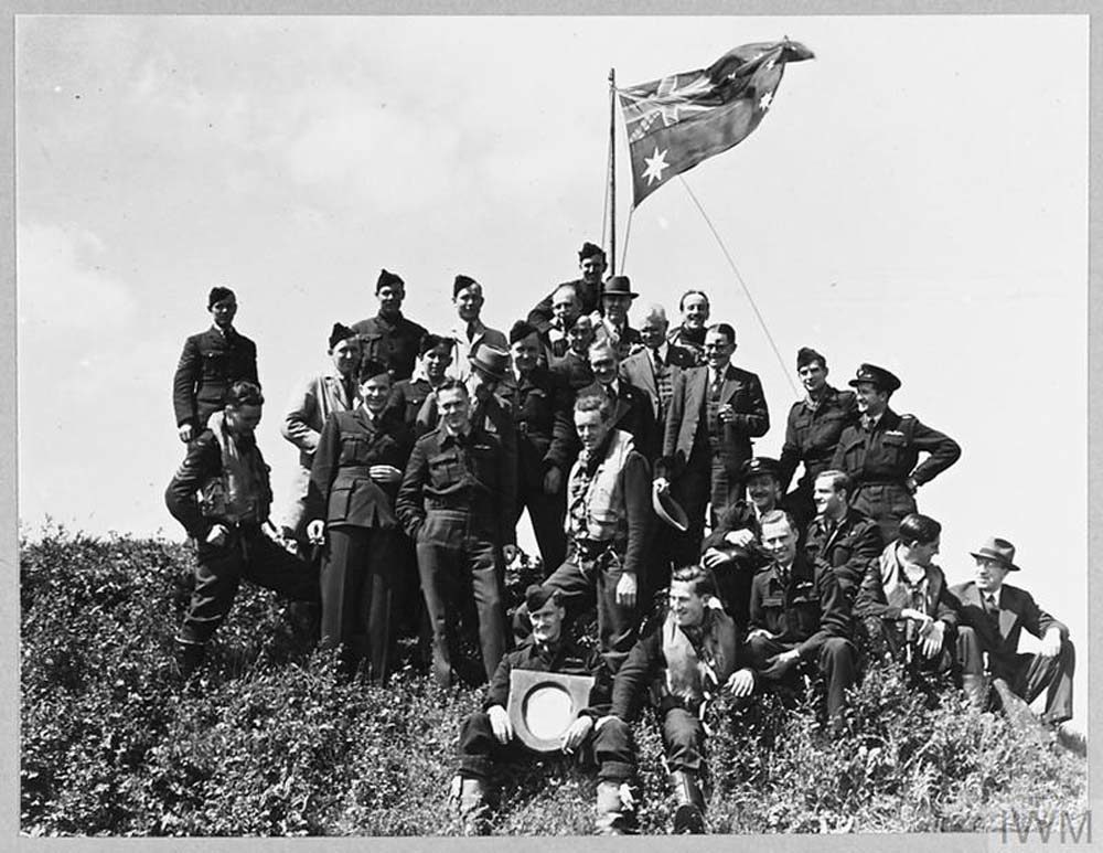 Australian MPs visit an Australian RAF Squadron in the UK. Aussies fought on land, air, and sea across the globe during World War Two (© IWM CH 9869)