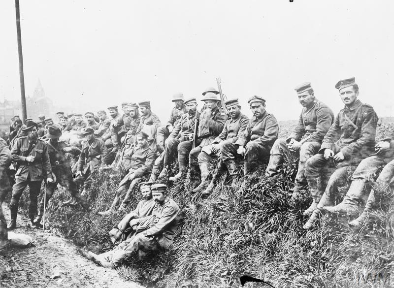 German Troops guarded by Australian soldiers at the close of Operation Georgette (© IWM Q 6570)