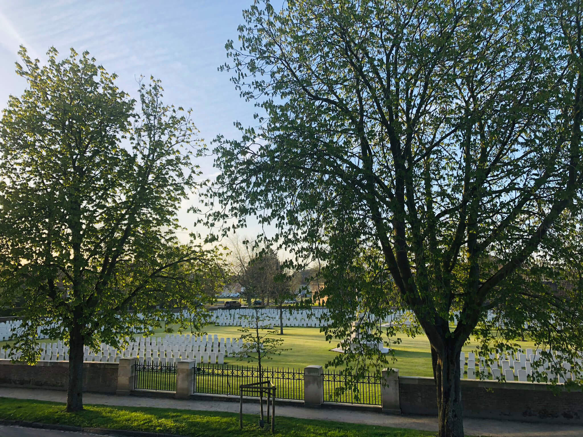 "Everyone is waking up to start their busy day while it remains silent @CWGC Ypres Reservoir Cemetery. An oasis of tranquillity in the midst of @StadIeper well, except for when the CWGC gardeners come in to mow the Spring grass, but that is a heartwarming sight too #CWGC" - Louise Dujardin