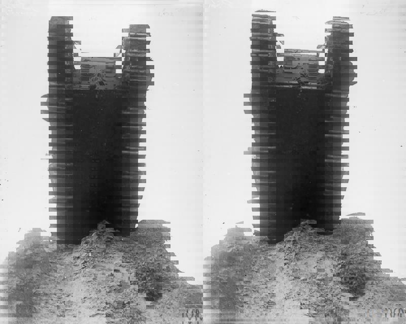A British Mark IV Tank advancing during training at Wailly ahead of Cambrai © IWM Q 6297