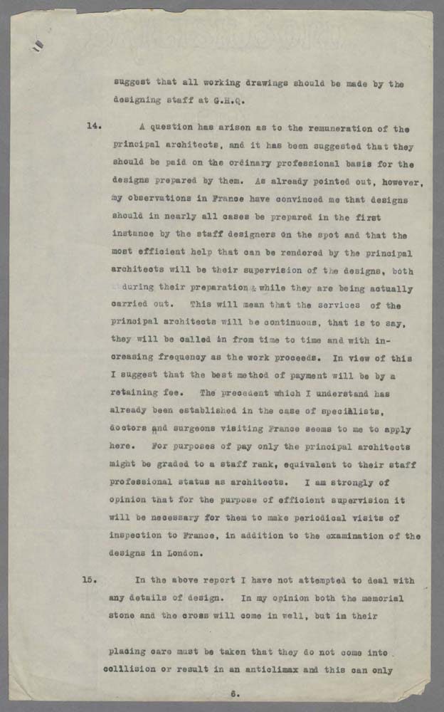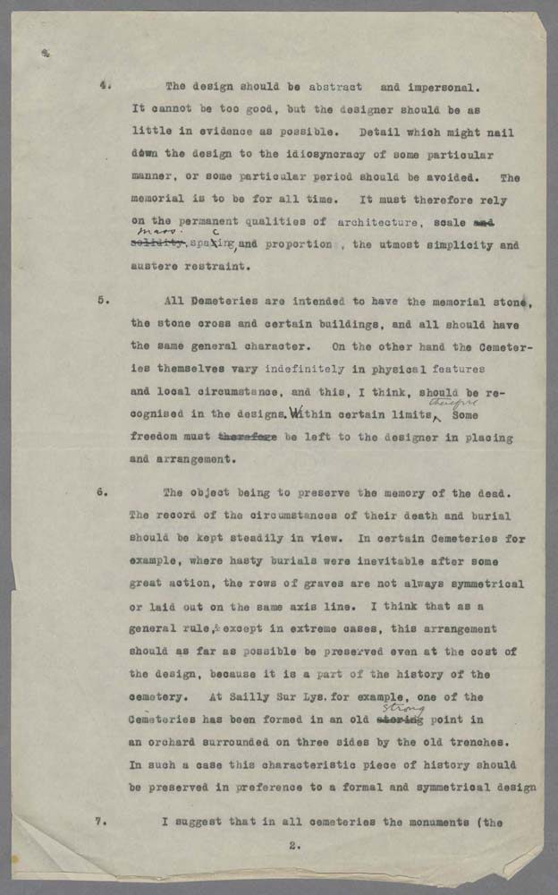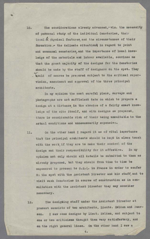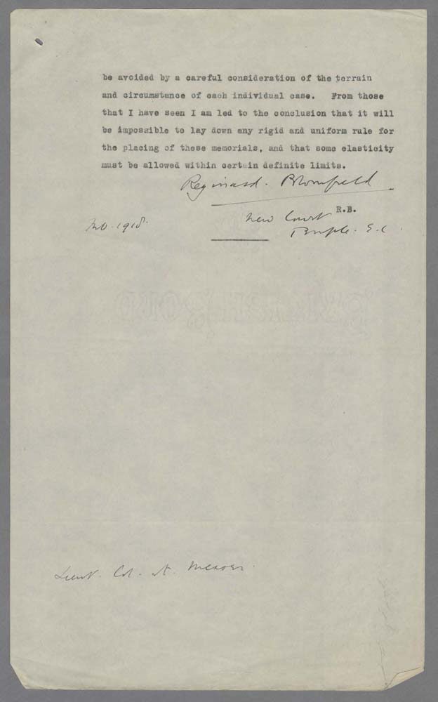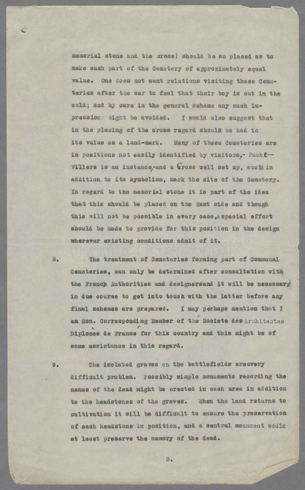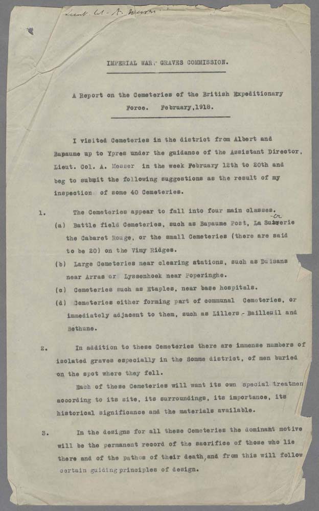 Sir Reginald recorded his observations and notes after carefully surveying these sites. His notes include several ideas that have gone on to influence how we operate and commemorate war dead, including: