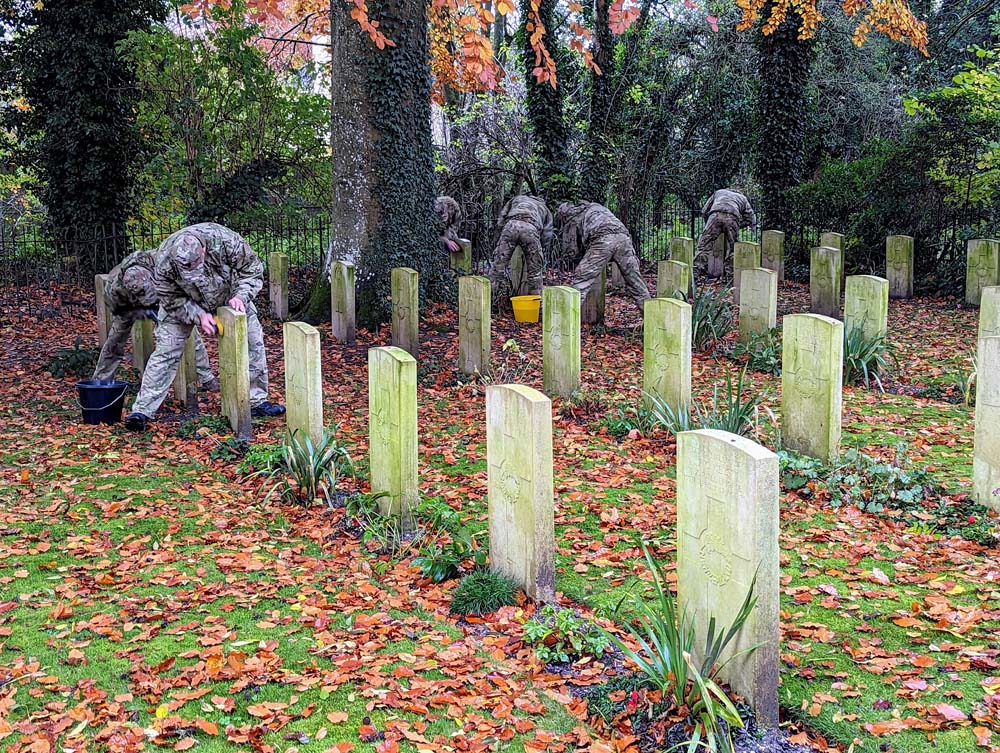 ANZAC soldiers pitch in at Codford War Cemetery, Wiltshire