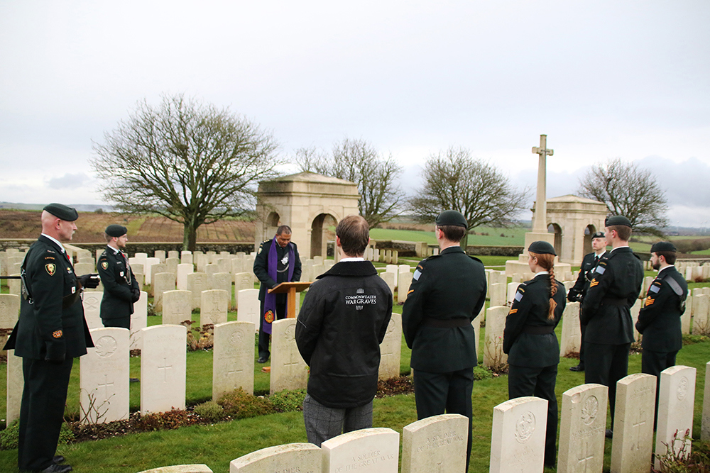 The rededication service at Regina Trench Cemetery was attended by family members, Canadian Defence staff, Regimental representatives, CWGC staff and local dignitaries.
