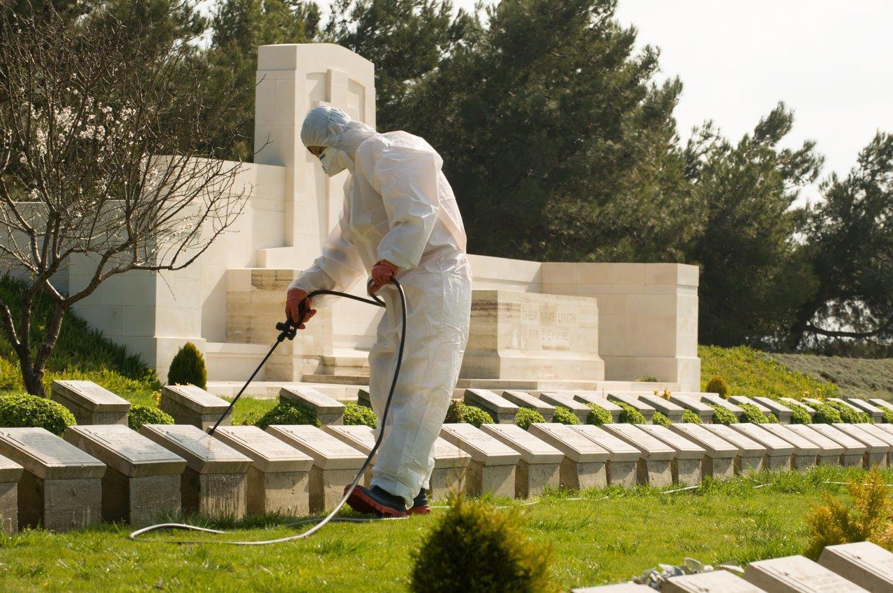 CWGC is working on a number of initiatives to help identify new ways of working which are increasingly environmentally responsible. For example, our operations teams are exploring new ways in which we clean our headstones and memorials. Traditional cleaning products are becoming increasingly restricted as governing authorities identify the impact such products can have when they leach into the soil and area eco systems.