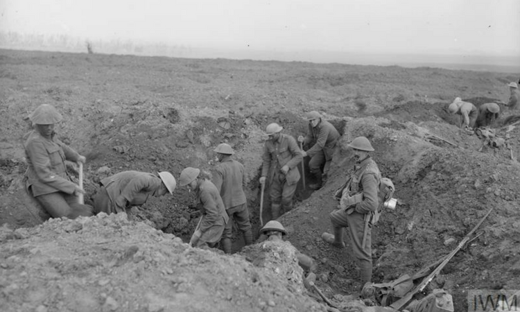 Battle of Flers-Courcelette - New Zealanders making a trench, near Martinpuich, 15 September 1916, © IWM (Q 193)