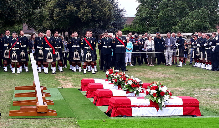 The moving burial ceremony was conducted by the Canadian Armed Forces with the support of Veterans Affairs Canada. The families of the four soldiers were in attendance – as were representatives of the Government of Canada, the Government of France, regimental representatives and the CWGC.