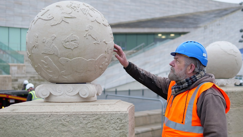 Two half-tonne Portland stone globes were carefully recreated after decades of exposure to the elements caused damage to these unique features.