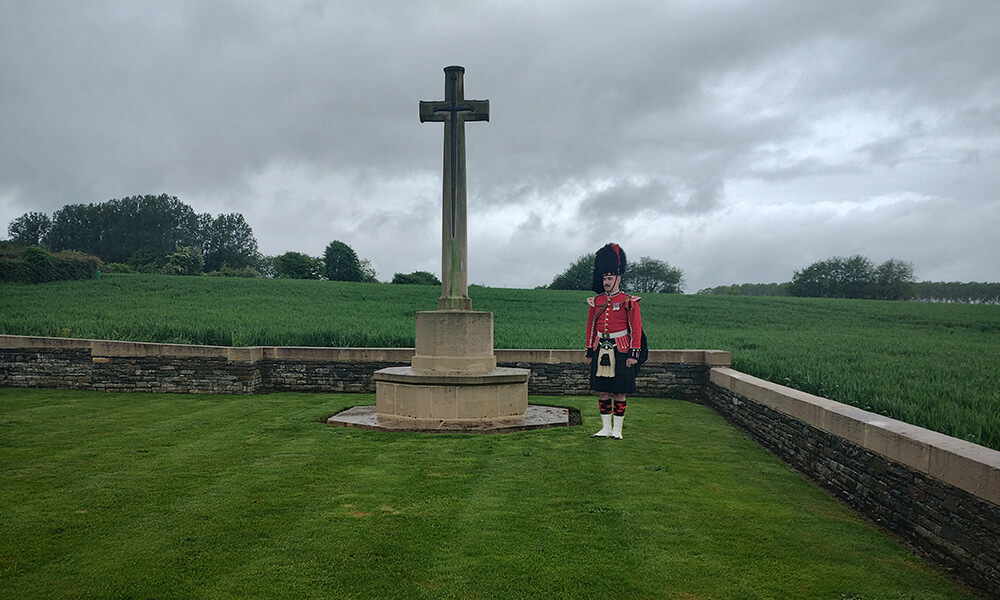 The rededication service, organised by the MOD’s Joint Casualty and Compassionate Centre (JCCC), also known as the ‘MOD War Detectives’, was held at our Courcelles-au-Bois Communal Cemetery Extension on 15 May.