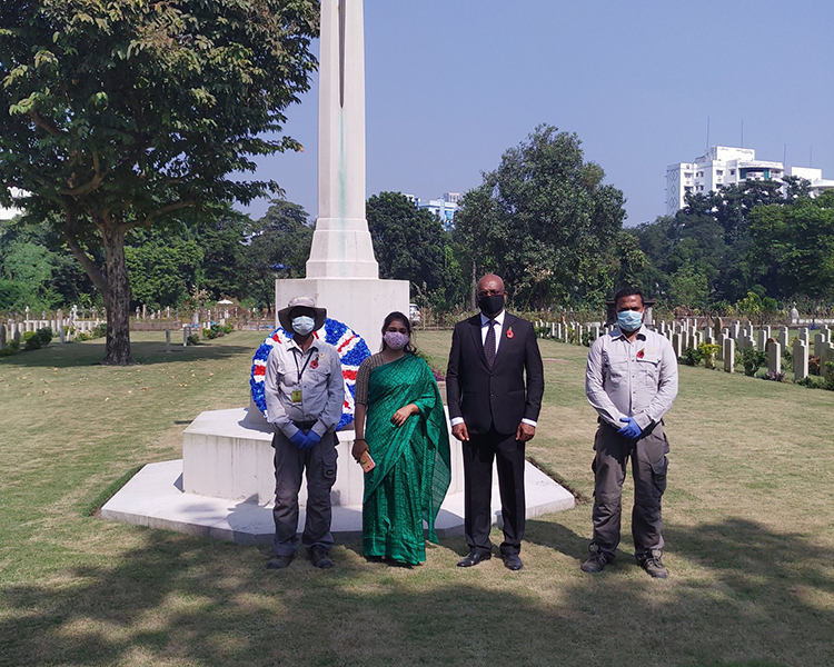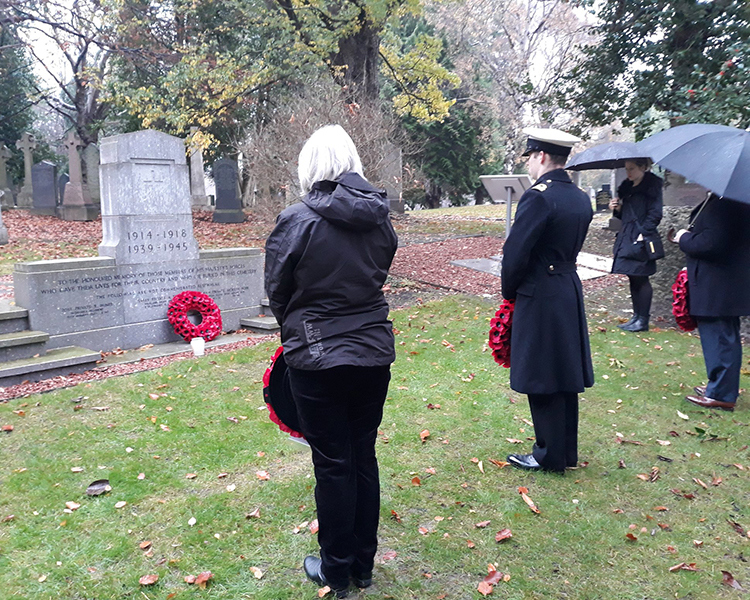The Cenotaph in London saw the traditional wreath laying and Moment of Silence, albeit socially-distanced and without the usual crowds, an event that was echoed throughout towns and villages across the country. Throughout the UK, people gathered at local sites to pay respects and to pay tribute; such as at our naval memorials in Plymouth and Portsmouth and at our cemeteries, like Edinburgh (Comely Bank) Cemetery.