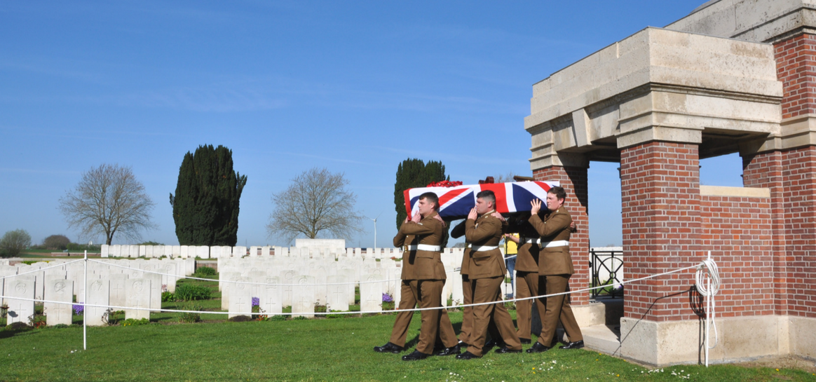 A burial service was held at the Commission’s New Irish Farm Cemetery this morning for Captain H J I Walker and six unknown soldiers, more than 100 years after their death.