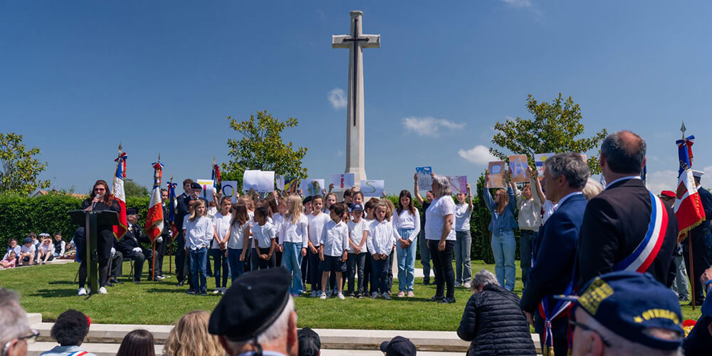 As darkness fell, each of the 4,600 headstones of those that fell in Normandy were individually illuminated across Bayeux War Cemetery, creating a poignant scene of remembrance. Lights were also be placed by schoolchildren at key CWGC sites across Normandy.