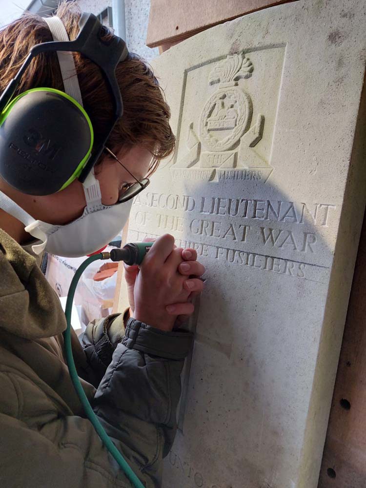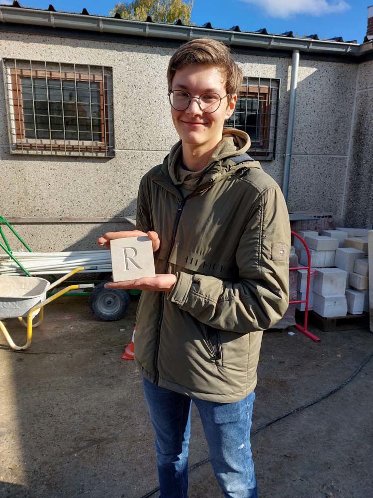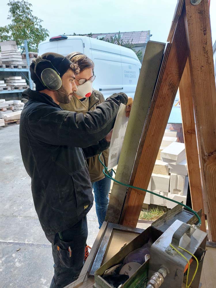 Student Tiemon Riem was mentored by our works colleague Benjamin Fioen. After an introduction to engraving techniques, he tried a hand at engraving a piece of natural stone himself.