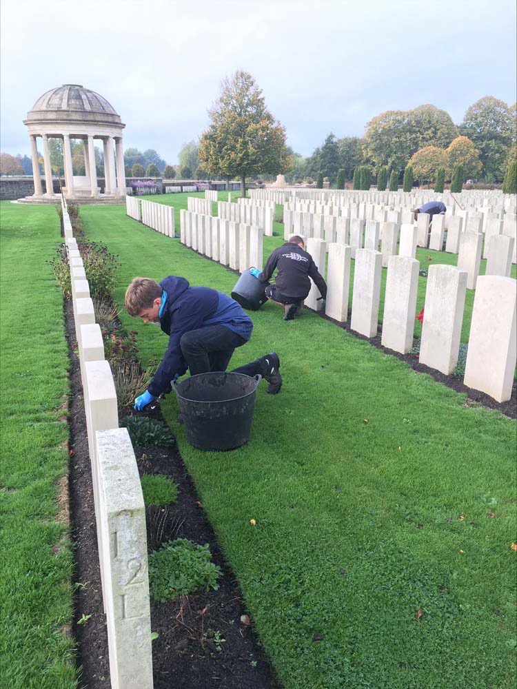 Matthijs Demeyere and Milan Debergh joined the Horticultural team at Bedford House Cemetery, where they learned more about border management at a CWGC cemetery.