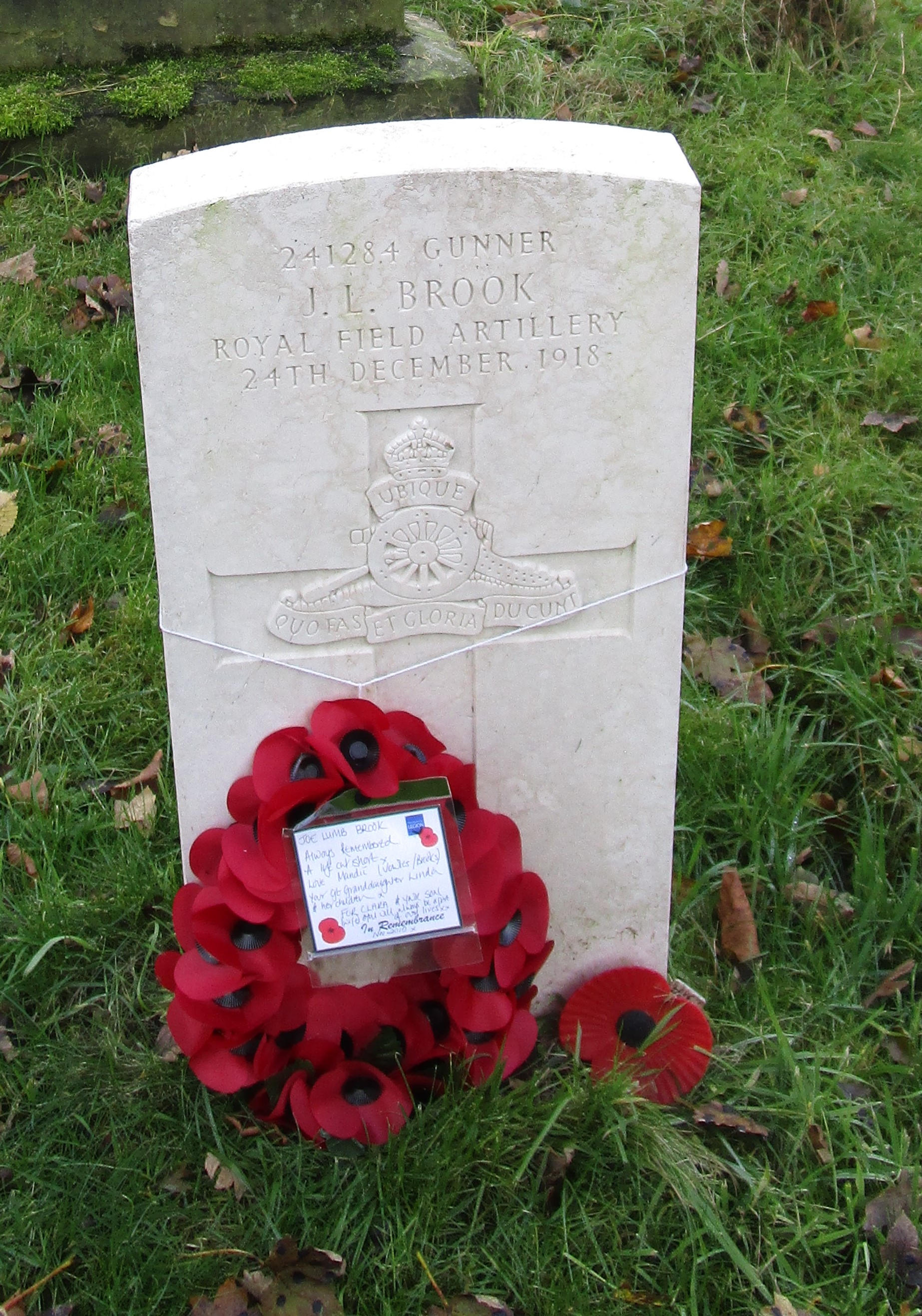 Gunner Joe Lumb Brook - Died Christmas Eve 1918