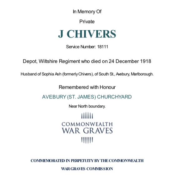 18111 Private James Chivers Wiltshire Regiment First World War Army United Kingdom AVEBURY (ST. JAMES) CHURCHYARD By Kevin Russell United Kingdom Read more
