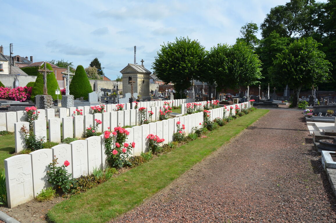 Charles Tucker lies buried in Nesle Communal Cemetery, on the Somme, in France, with his grave marked by a CWGC headstone.