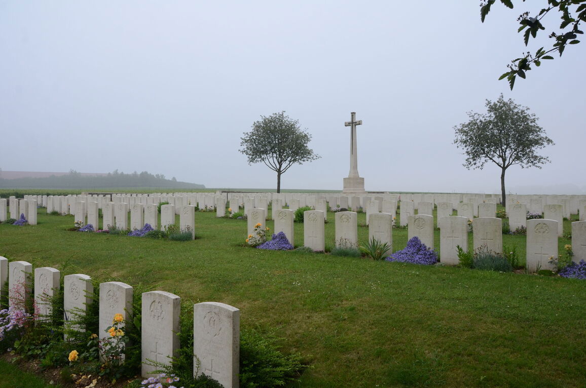 Percy was initially interred close to where he fell, a cross was used to mark his grave and this was used to identify him post war when his body was exhumed for re-burial in St Emilie Valley Cemetery, Villers-Faucon.