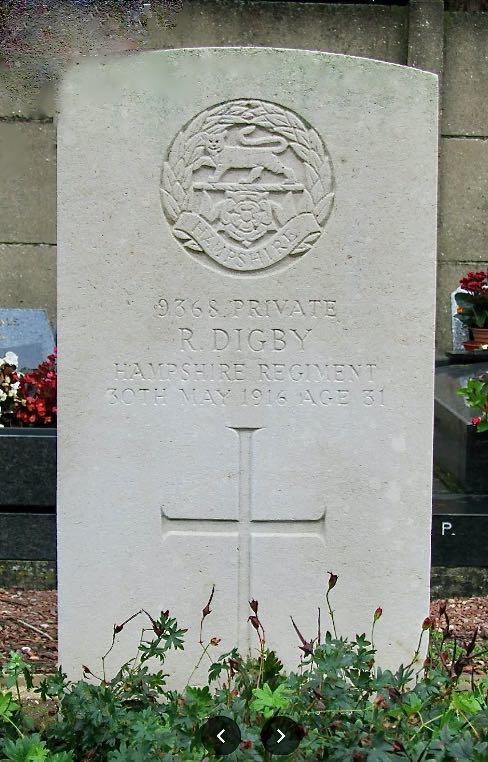 Robert Digby was born in 1885 in Northwich, Cheshire, the son of Robert & Ellen Digby. Robert senior was a colonial soldier serving in India, but was seriously injured in a hunting accident. Ellen Digby was a fishmonger’s daughter from Northwich, and Robert junior was born while the family were on home leave in England. His younger siblings, Thomas and Florence were born in Bengal, before Colonel Digby was sent home in 1908. His injury was such that he had been invalided out of the army, and the family settled in Totton in Hampshire.