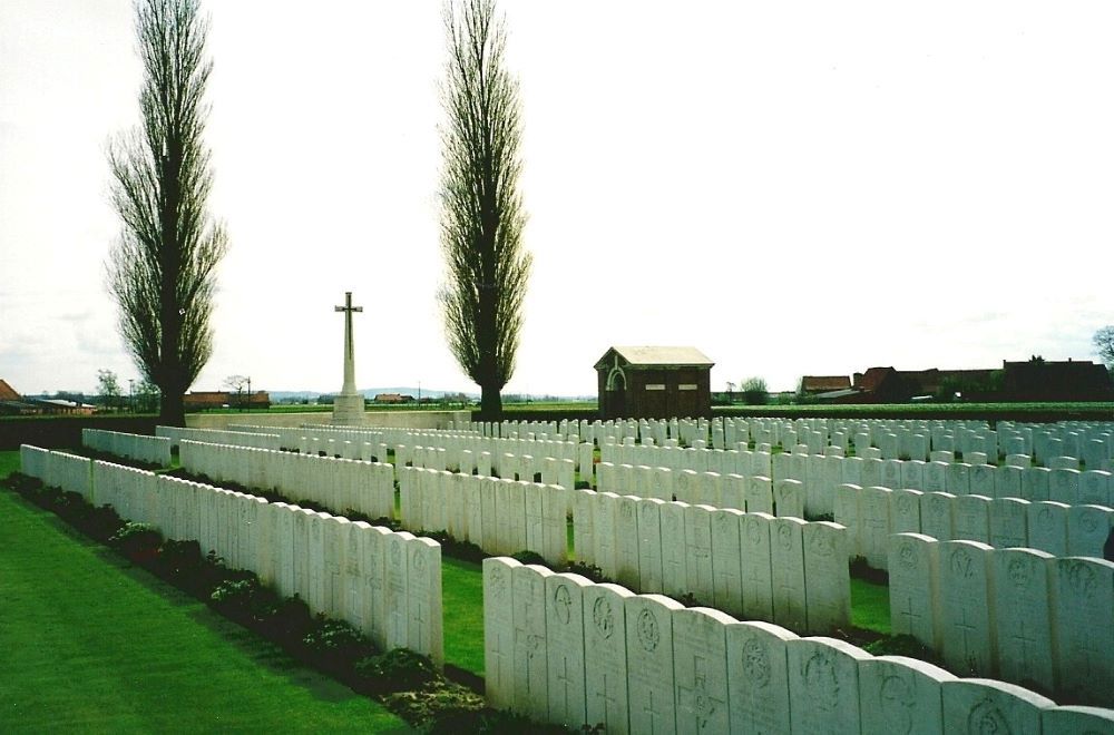 He was evacuated down the medical chain, some 33 miles from where he was wounded, to No. 3 Australian Casualty Clearing Station, at Bandaghem, north-west of Poperinghe, where he died six days later, on Saturday, 5 October.