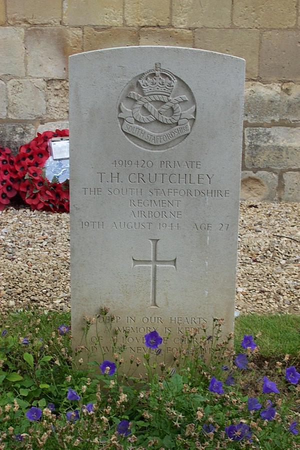 For a month Thomas had experienced the full horrors of Normandy in 1944, before he himself finally fell victim to those very same horrors. His fate was shared by several of his comrades from the same regiment, who also died on the August 19th during the same action. Thomas Henry Crutchley lies buried with his comrades in the Commonwealth War Graves section of the peaceful Churchyard at Putot-en-Auge, his name is engraved forever on the British Normandy Memorial.