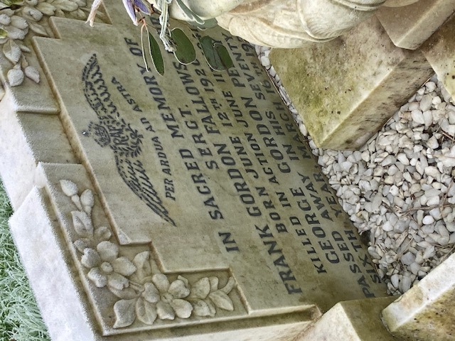 "In sacred memory of Sergt. Frank Gordon Fallows Perry Born 12th June 1920. Killed in action 11th June 1941"