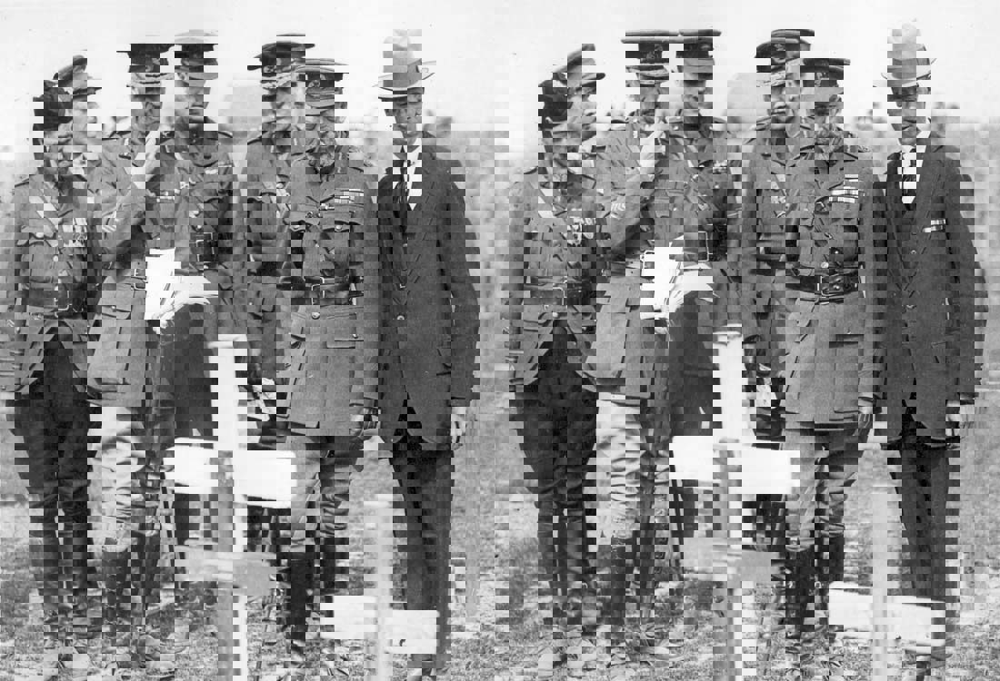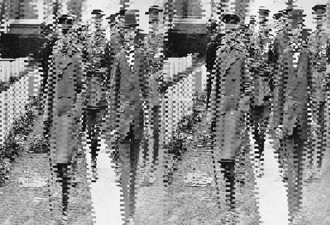 On a week-long tour of France and Belgium, King George V travelled with Fabian Ware and Field Marshal Douglas Haig to more than 30 cemeteries and memorials in various states of development. This included Tyne Cot – which would become the largest Commission cemetery in the world – and the early ‘experimental’ cemeteries Forceville and Louvencourt.